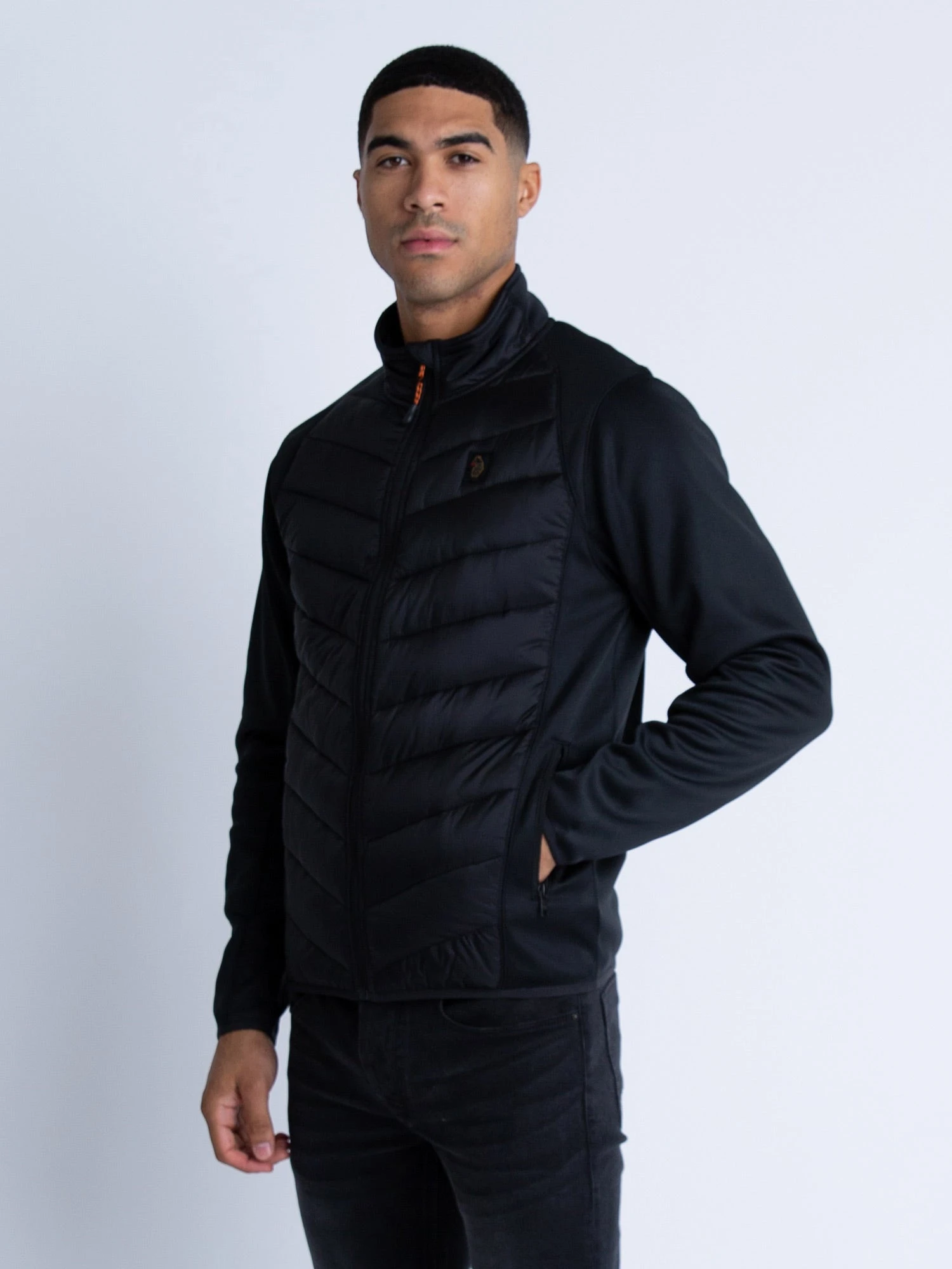 LUKE takes inspiration from traditional outdoors wear with this fabric mix fleece. It is crafted from a bonded fleece and features a quilted ripstop front which is insulated for extra warmth. It is fitted with handy lower zip pockets, detailed with a statement orange bungee cord and it is complete with the brand’s iconic lion head embroidery on the left chest.