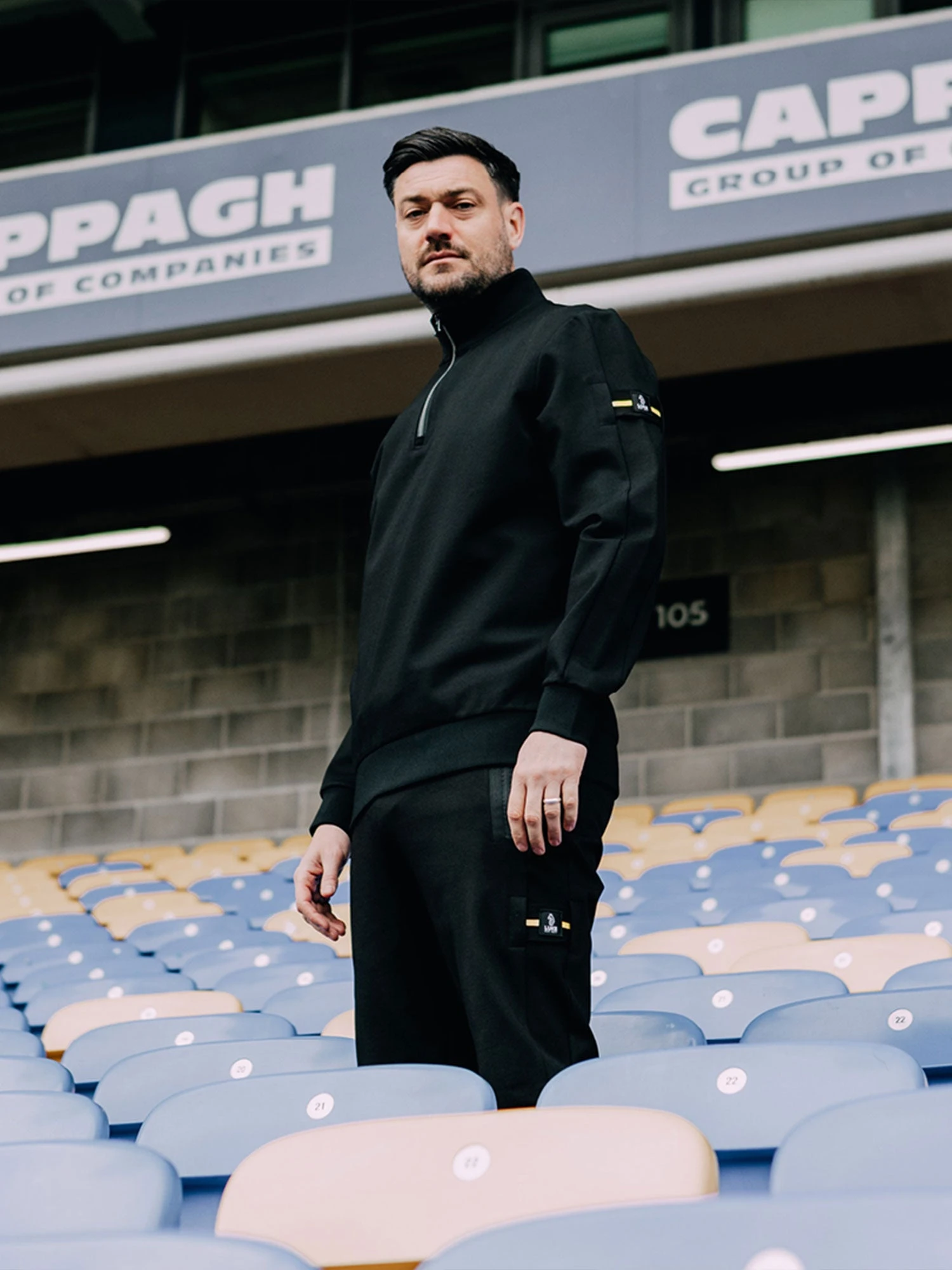 Add a touch of sporting style to your casual wardrobe with this premium sweat from the LUKE X AFC Wimbledon collaboration. It is crafted from a premium interlock fabrication and features a stylish front quarter zip. The left sleeve features an AFC Wimbledon black and yellow striped detachable tape detailed with the brand’s iconic LUKE EST. 1977 woven badge and the right is styled with a zip pocket which is complete with a raised rubber print of the AFC Wimbledon crest.