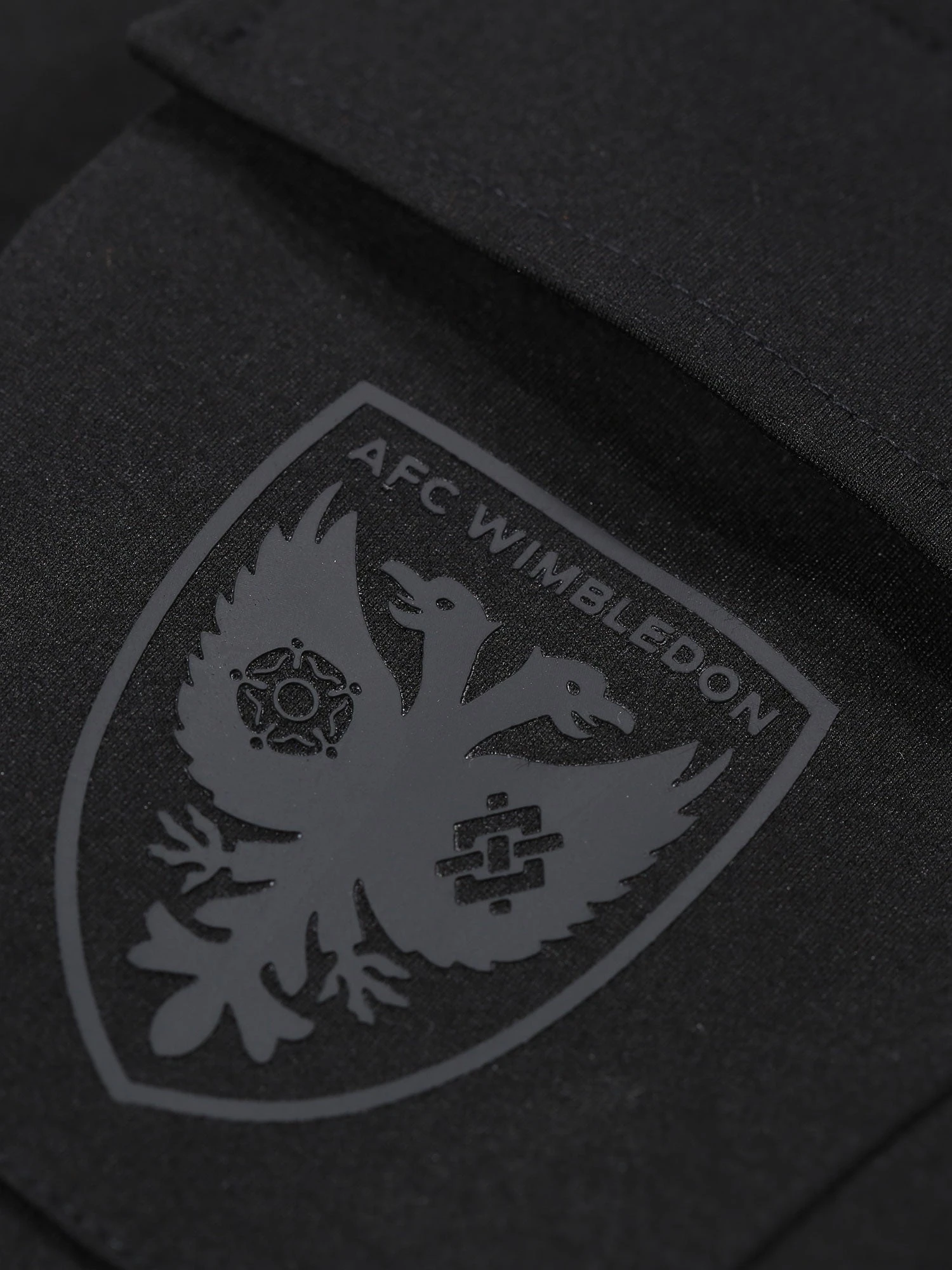 Joggers feature a comfy drawcord waistband and handy side zip pockets. The left leg features an AFC Wimbledon black and yellow striped detachable tape detailed with the brand’s iconic LUKE EST. 1977 woven badge and the right is styled with a zip pocket which is complete with a raised rubber print of the AFC Wimbledon crest.