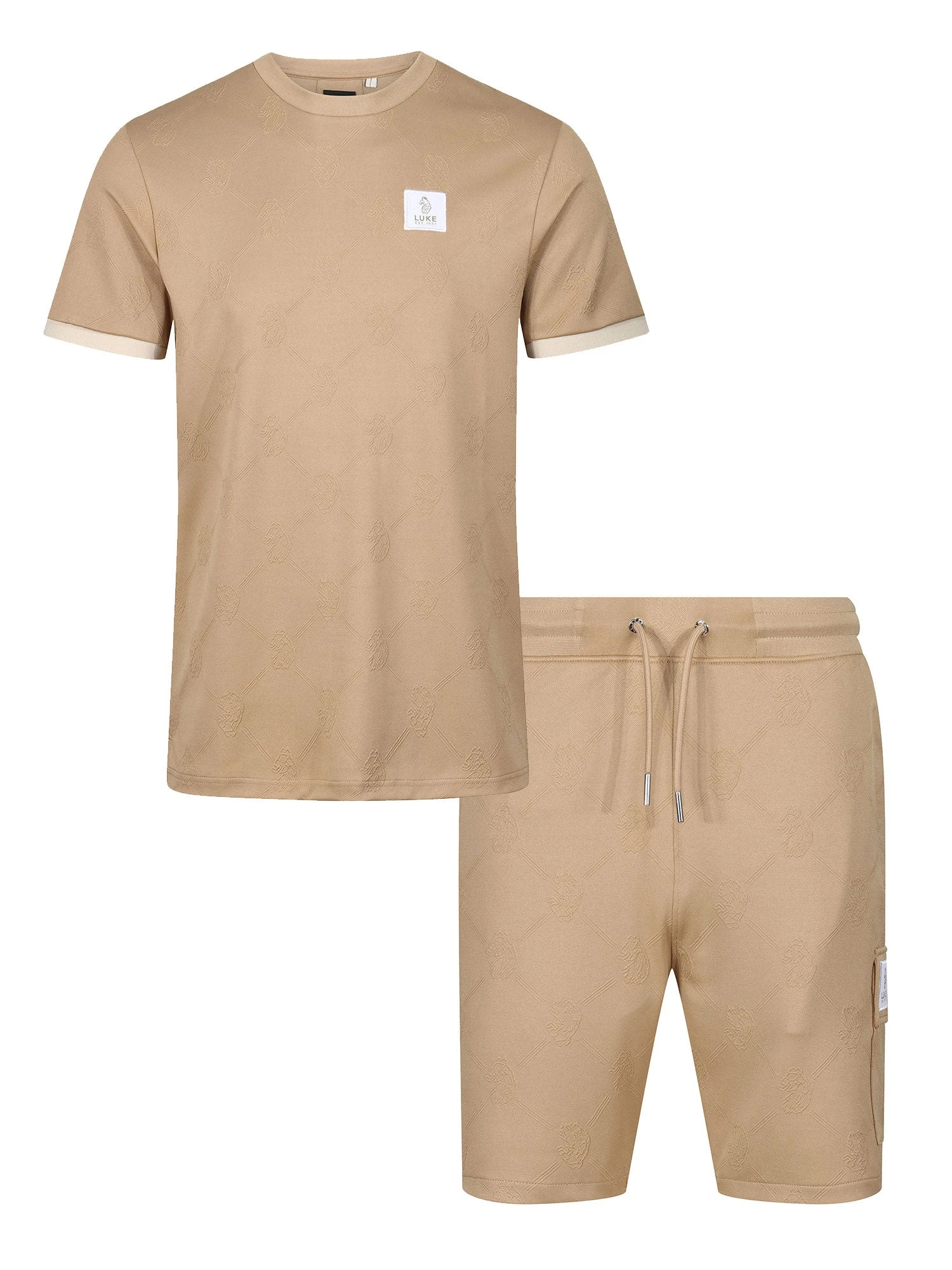 This casual crew neck tee & shorts set from LUKE is the perfect piece to upgrade your off duty looks. Crafted from a subtle all-over repeat lion and stripe jacquard fabric. T-shirt features contrast rib cuffs and complete with the brand’s iconic LUKE EST. 1977 woven badge on the left chest. Shorts feature a comfy drawcord waistband and essential side zip pockets, perfect for all your essentials. A large pocket sits on the left leg and is complete with the brand’s iconic LUKE EST. 1977 woven badge.