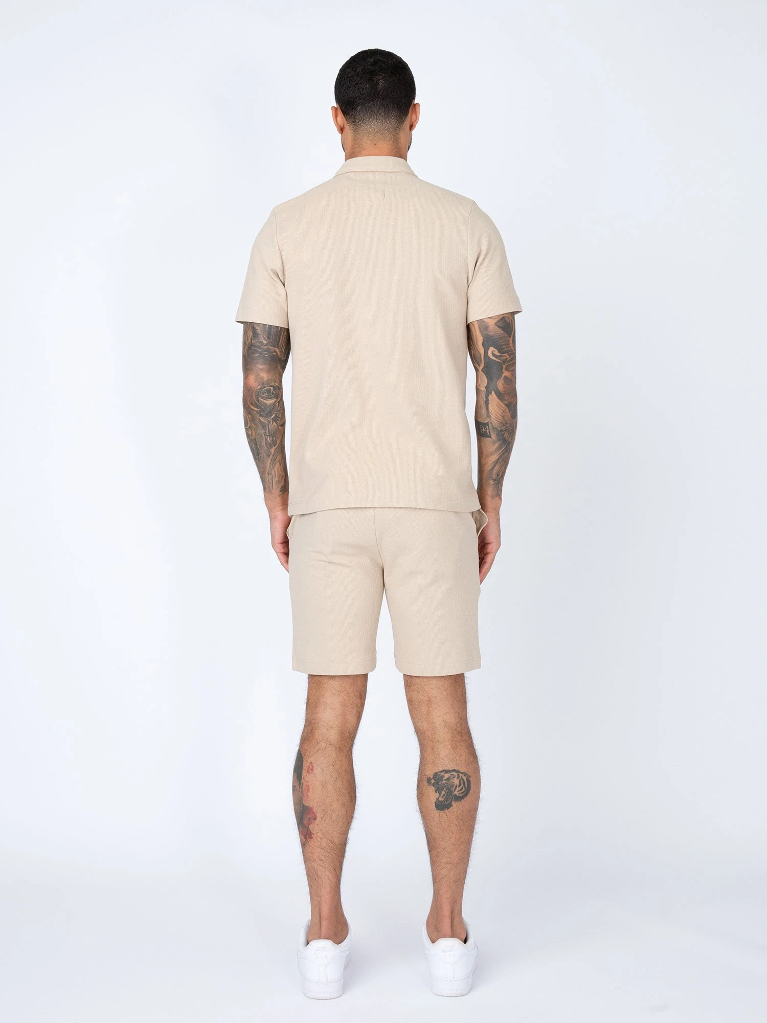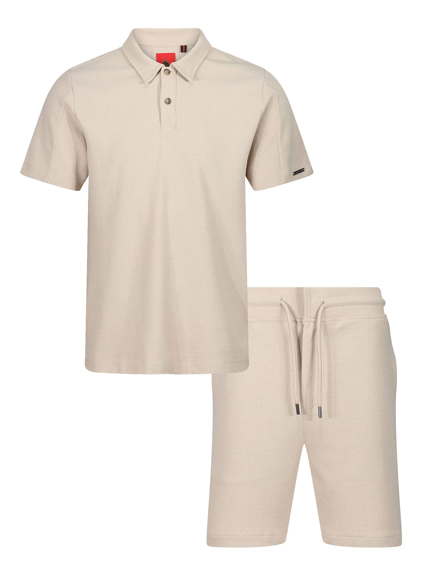 This textured polo & shorts set from LUKE is a stylish addition to your smart-casual wardrobe. Crafted from a premium soft waffle, this piece is a clean-cut staple. Polo features a classic collar and summary placket detailed with colour match horn summarys. Shorts feature a comfy drawcord waist and handy side pockets. The look is then complete with a subtle LUKE 1977 metal bar on the left sleeve and above rear pocket.