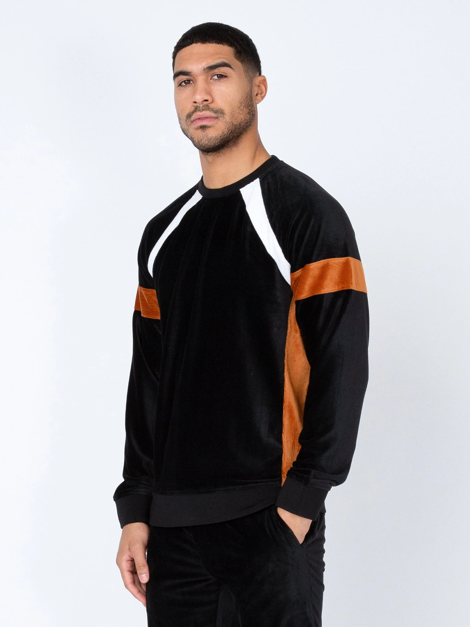 - Contrast cut and sew panels