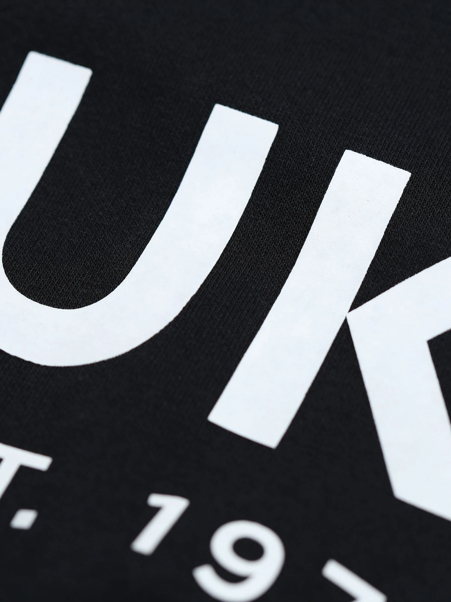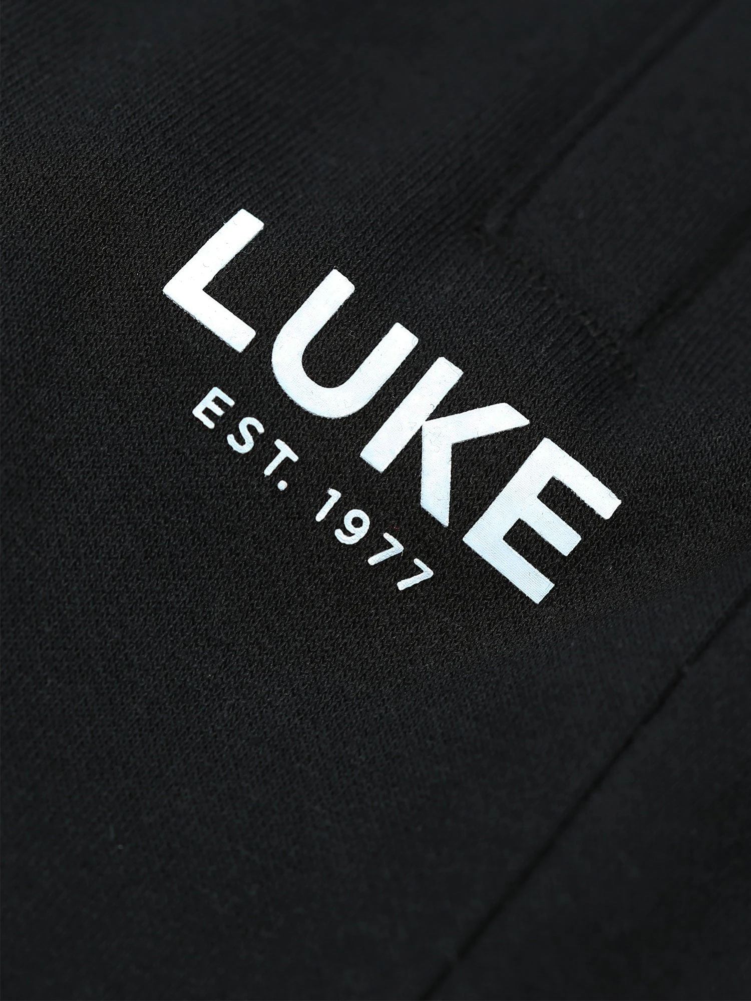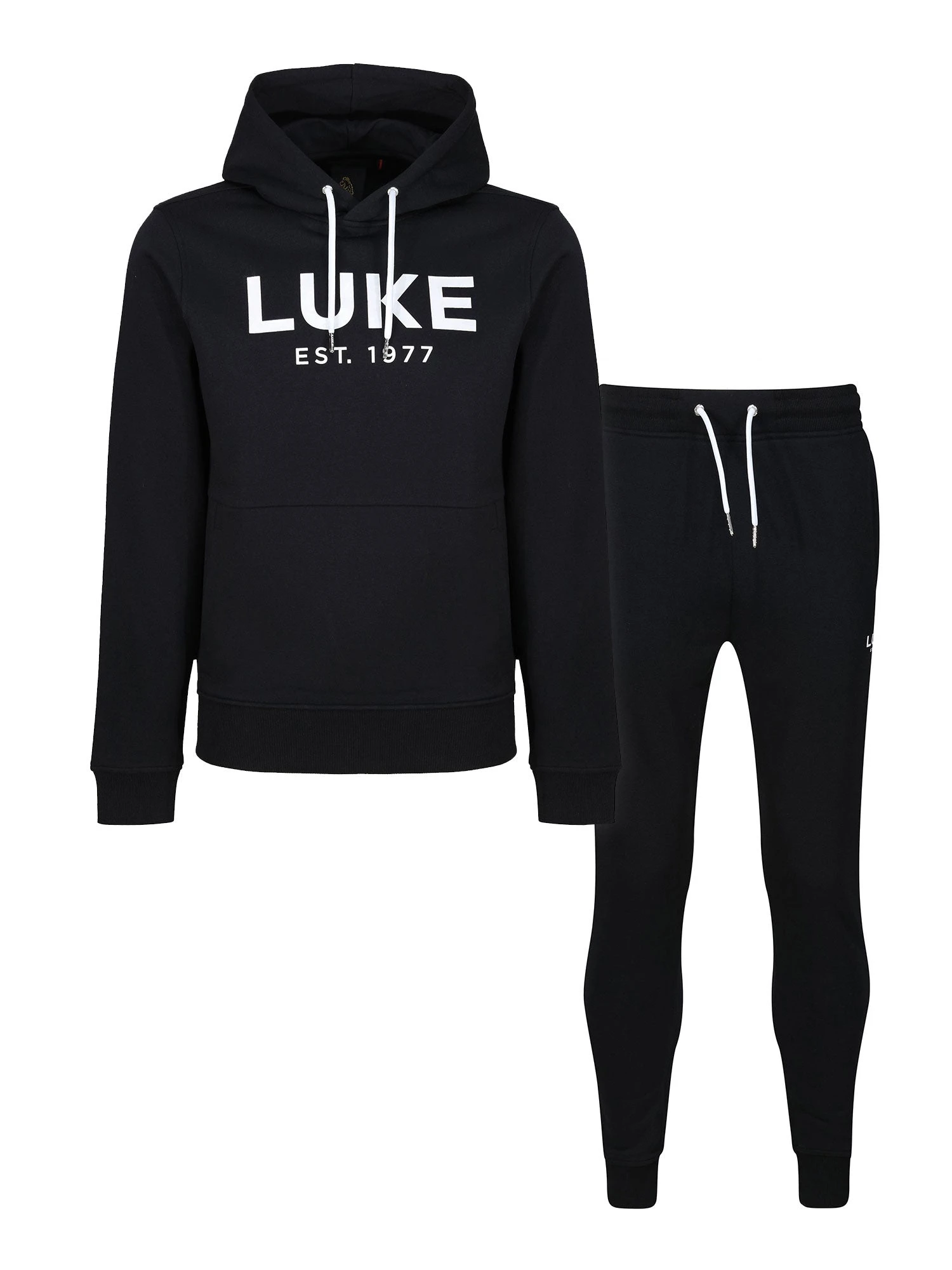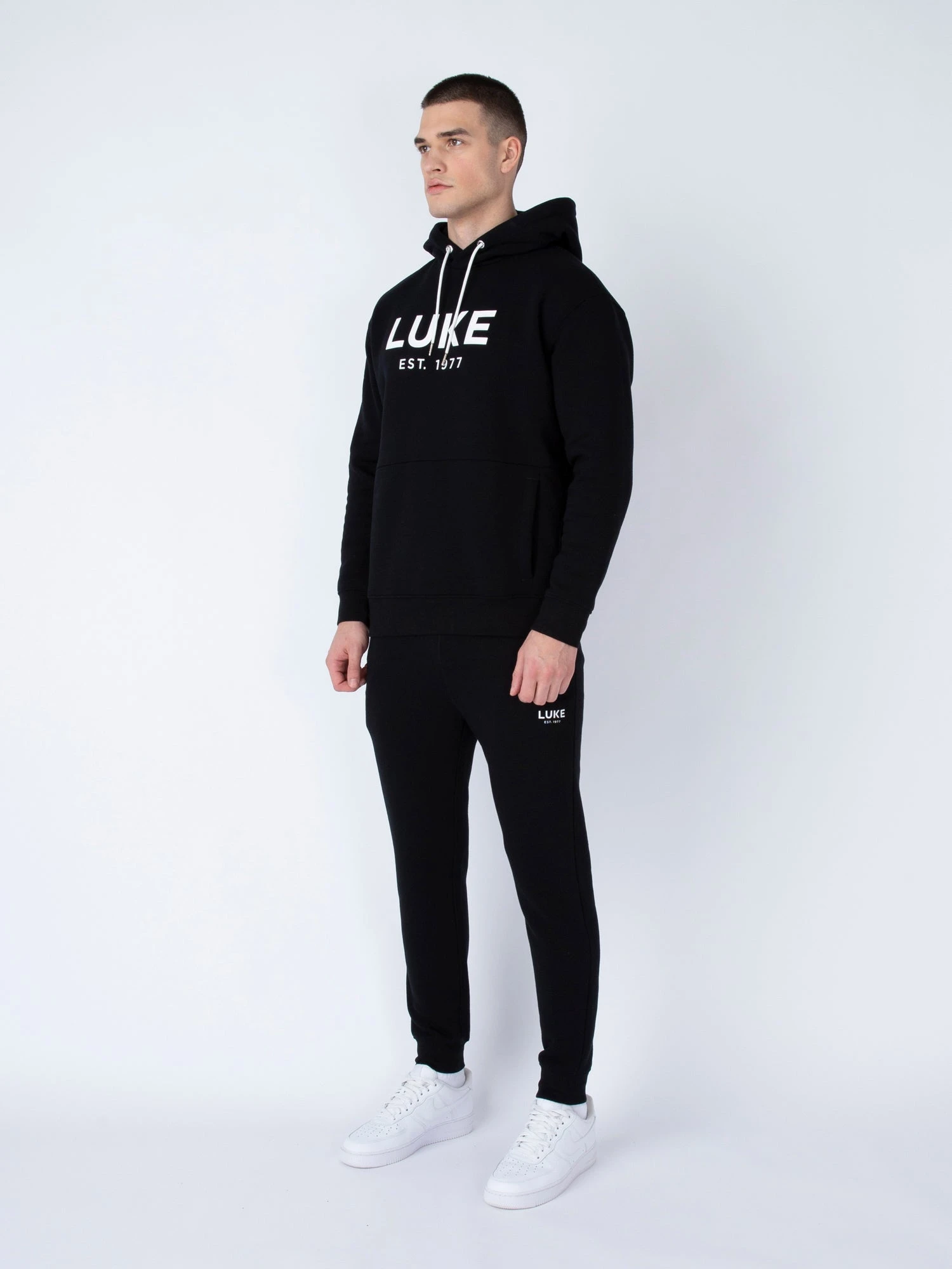 Update your collection of everyday essentials with this classic hoodie & joggers set from LUKE. Crafted from a super soft cotton fleece back, it is perfect for staying cosy. Hoodie is cut to a relaxed fit, featuring comfy rib trims throughout and handy lower side pockets. Joggers feature a comfy drawcord waist and rib cuffs and are fitted with handy side zip pockets, ideal for all your essentials. The look is then signed off with a LUKE EST.1977 raised text print across the chest and on the left leg.Â