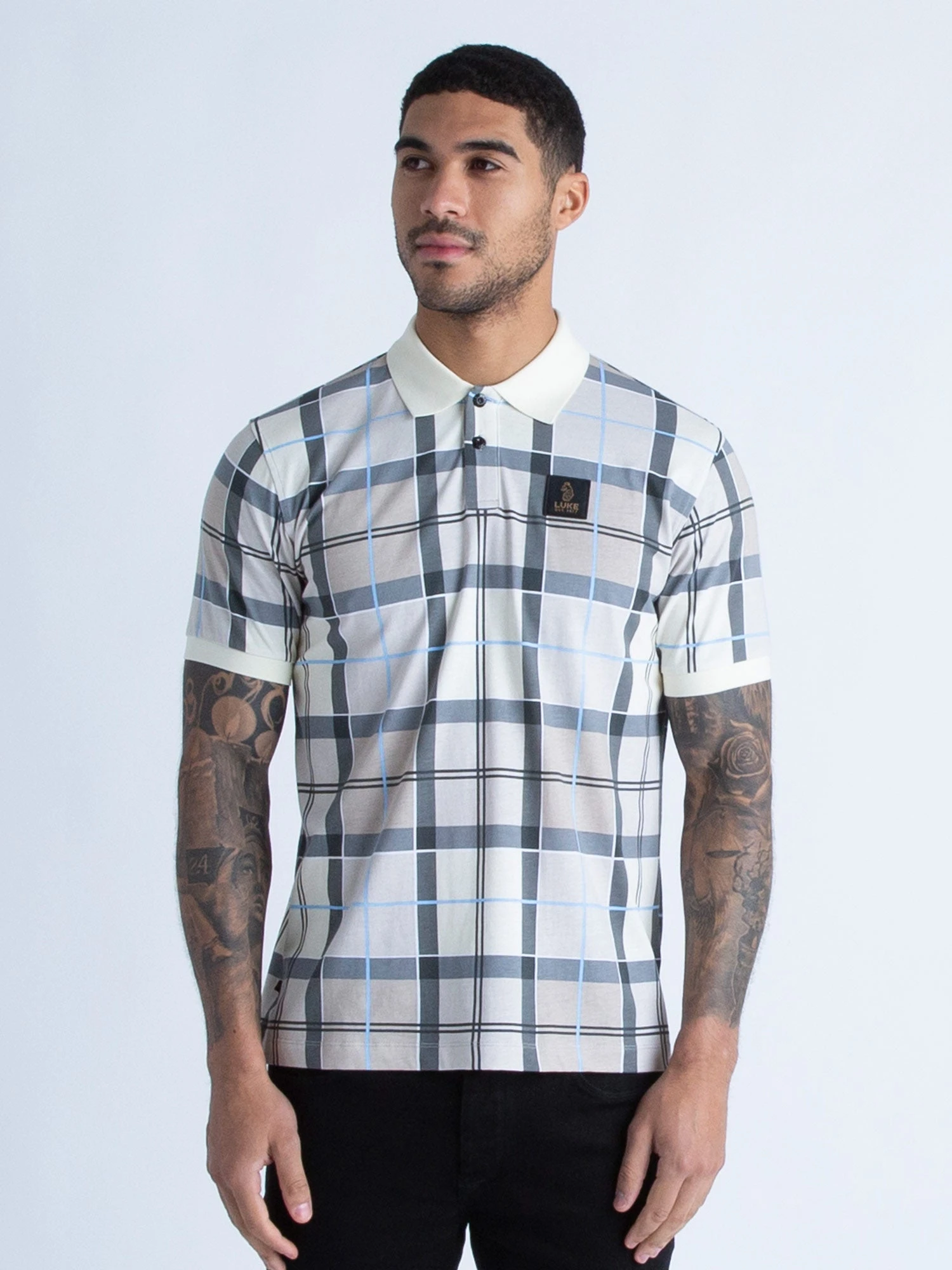 The Hadrians polo from LUKE is a stylish addition to your smart/casual wardrobe. Constructed from a premium cotton, it is designed with an all-over printed check and detailed with black military LUKE summarys. The look is then signed off with a LUKE EST. 1977 woven badge on the left chest.