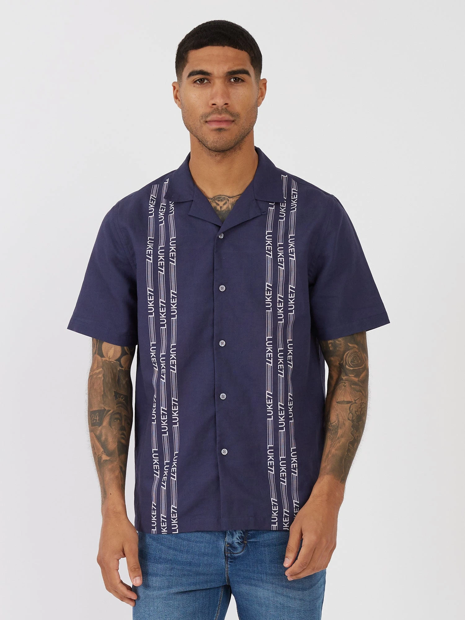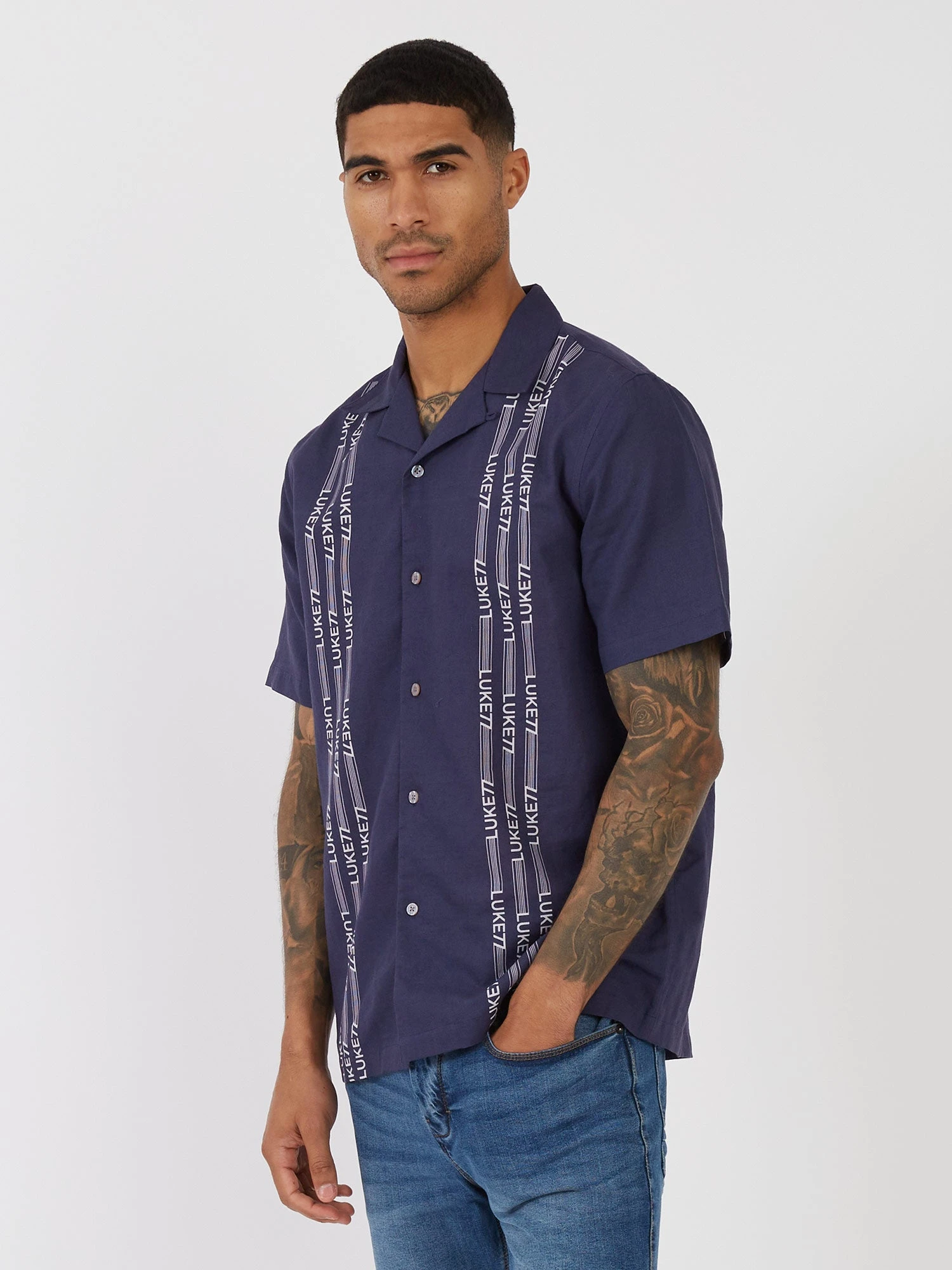 This breezy holiday short sleeved shirt from LUKE is the perfect summer piece. Crafted from a soft and breathable linen mix, it is cut to a relaxed fit and features various printed designs, which change per colourway. It has a classic collar and front summary placket detailed with imitation mother of pearl plastic summarys.