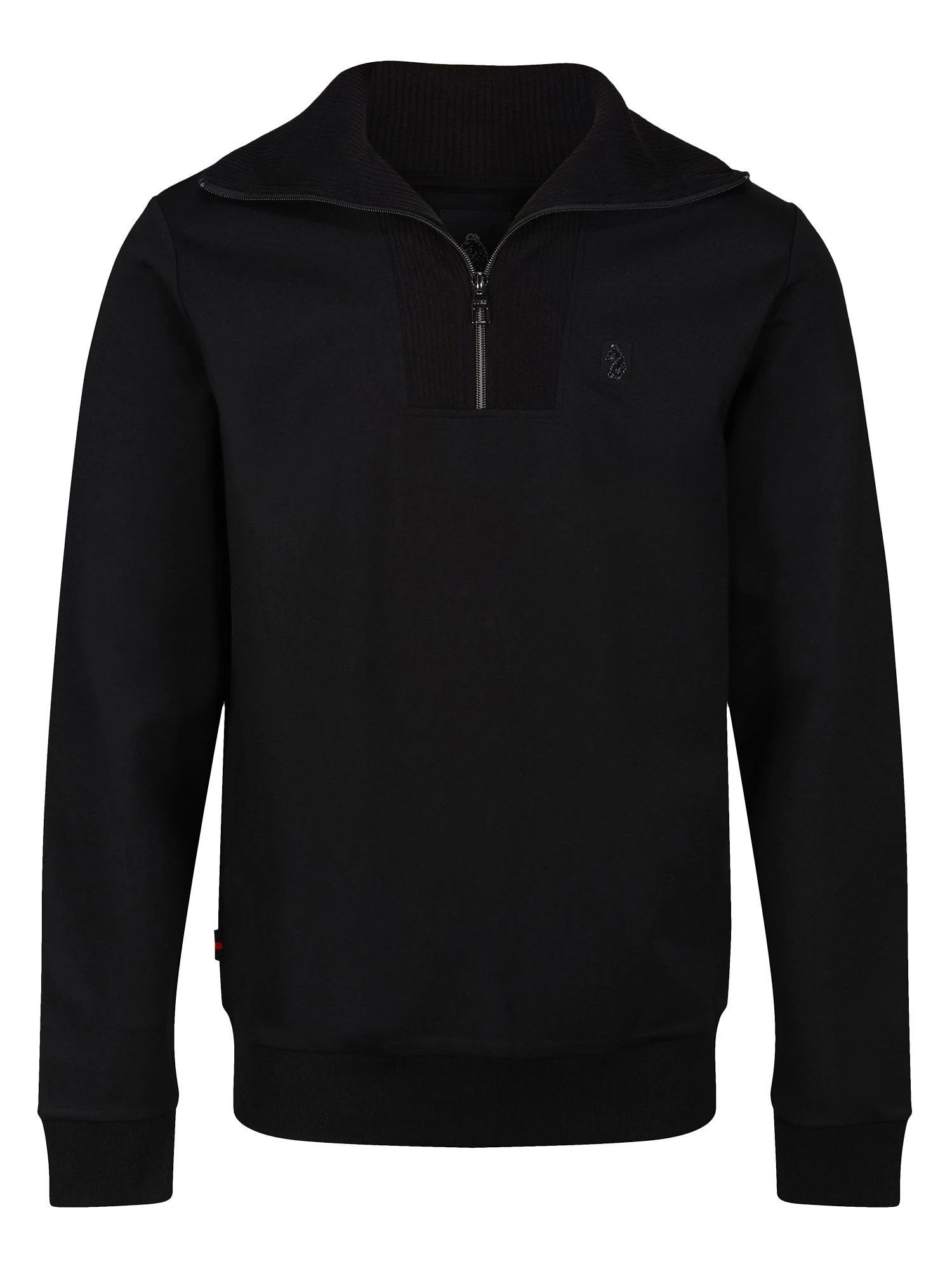 LUKE Mainline is all about creating well-crafted, premium wardrobe essentials and this quarter zip sweat is case in point. It is cut from a premium fabrication and has a contrast chunky rib roll neck. It is detailed with a dark pewter gloss quarter zip and features snug rib trims on the cuff and hem. It is complete with brands iconic black shiny raised metal lion felt badge on the left chest.