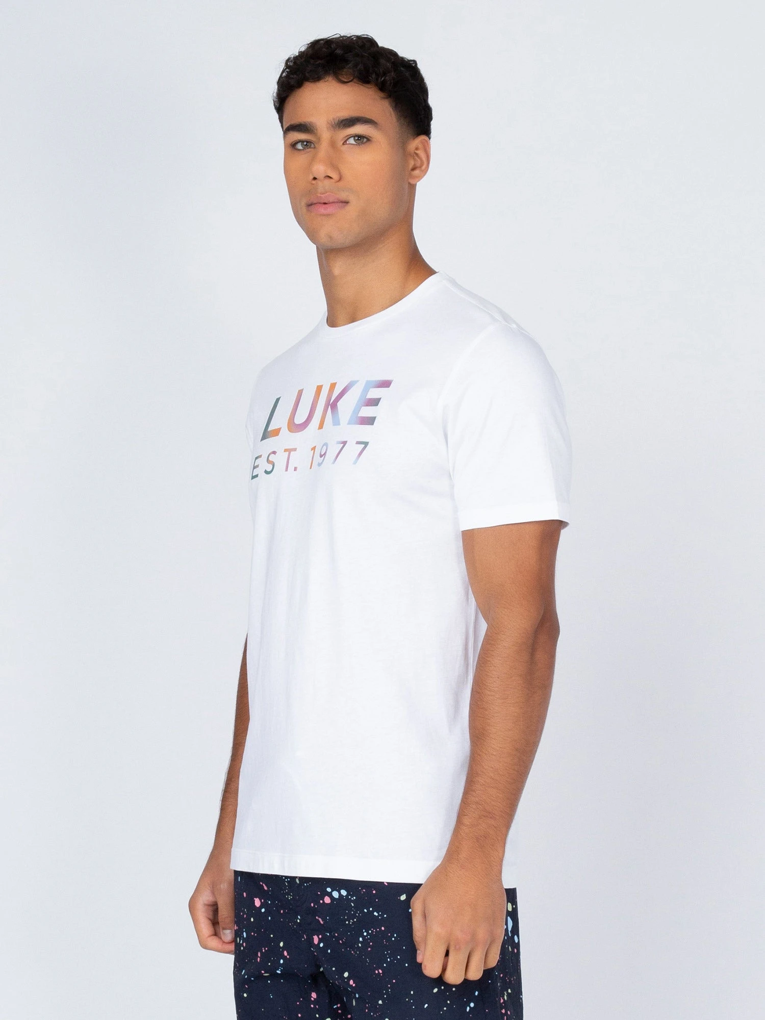 This classic crew neck tee from LUKE is a cool and comfortable addition to your casual wardrobe. Cut from a luxury pure cotton, it is fitted with a soft rib neck and features a LUKE EST. 1977 print in multi-colour across the chest.