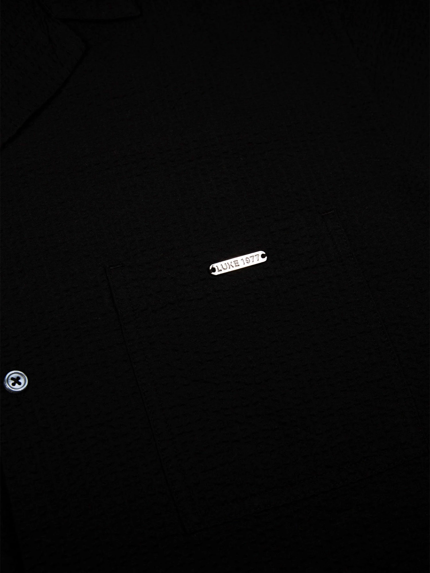 Get vacation ready with LUKE’s MILLOOK short sleeve shirt, as textured cotton shirt is perfect for those summer months. It features a classic summary up front and a left chest pocket which features the iconic LUKE 1977 sew on bar in gloss pewter.Â
