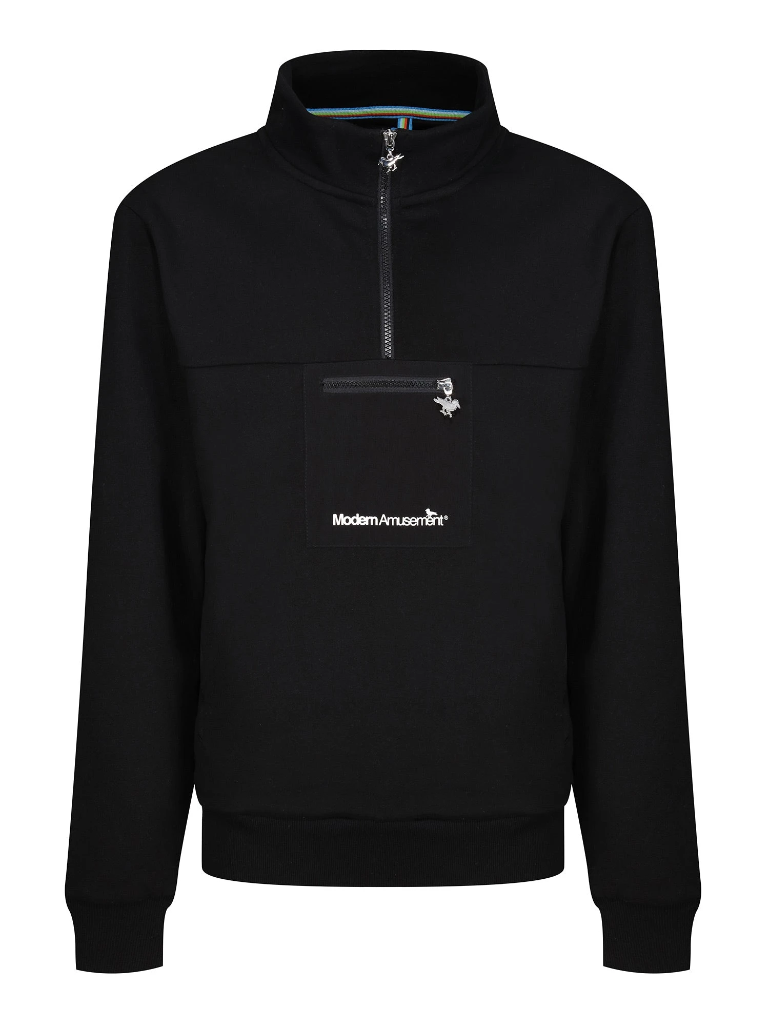 LA brand Modern Amusement craft this funnel neck sweatshirt to a oversized fit for the perfect street-savvy staple. Made from a comfy cotton blend, it’s fitted with a quarter- zip neck which features the brand’s iconic crow zip puller. This piece has a contrast nylon front pocket which is printed with the Modern Amusement text in white.