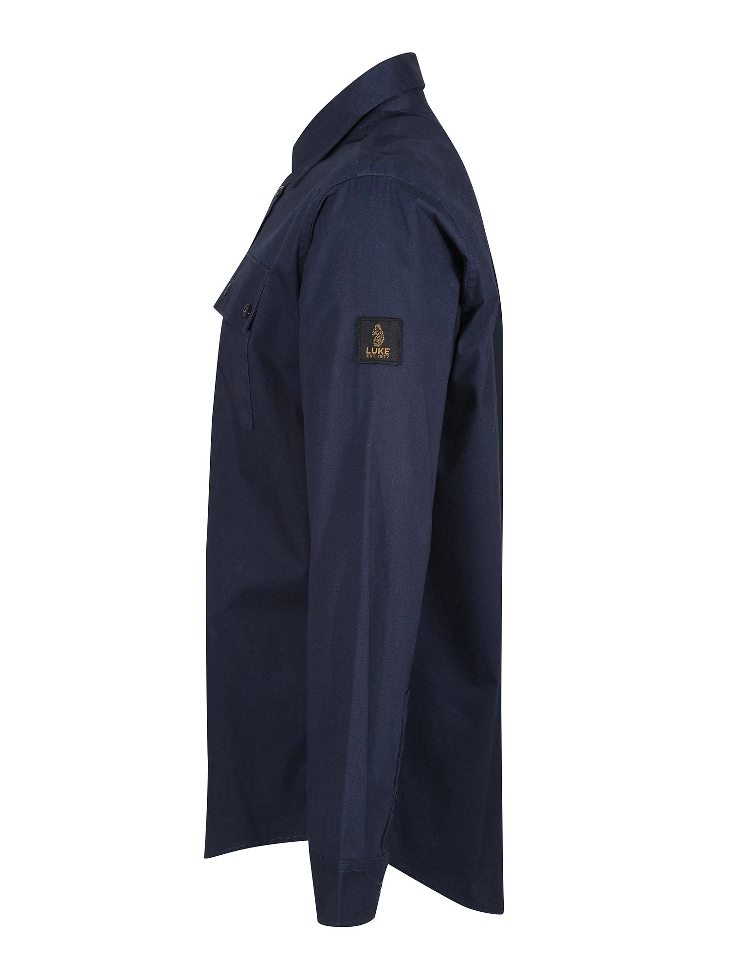 This casual long sleeve utility shirt from LUKE is a contemporary classic, perfect to wear as a stand-alone piece or layered over a neutral tee. Cut to a regular fit, it is constructed from a soft cotton blend, styled with shiny black military summarys, and fitted with a military inspired chest pocket. The look is then signed off with brand’s iconic LUKE EST. 1977 woven label on the left sleeve.