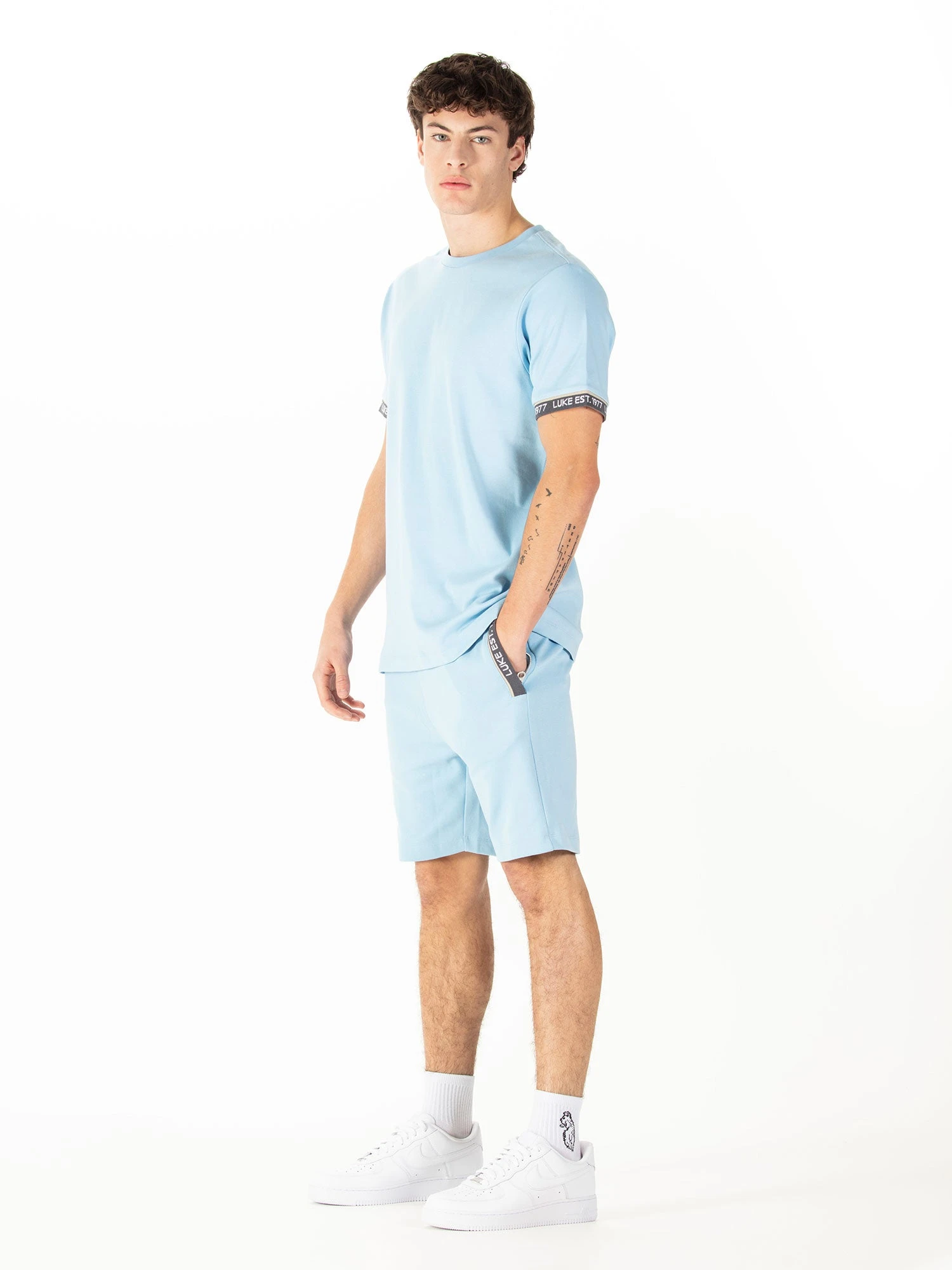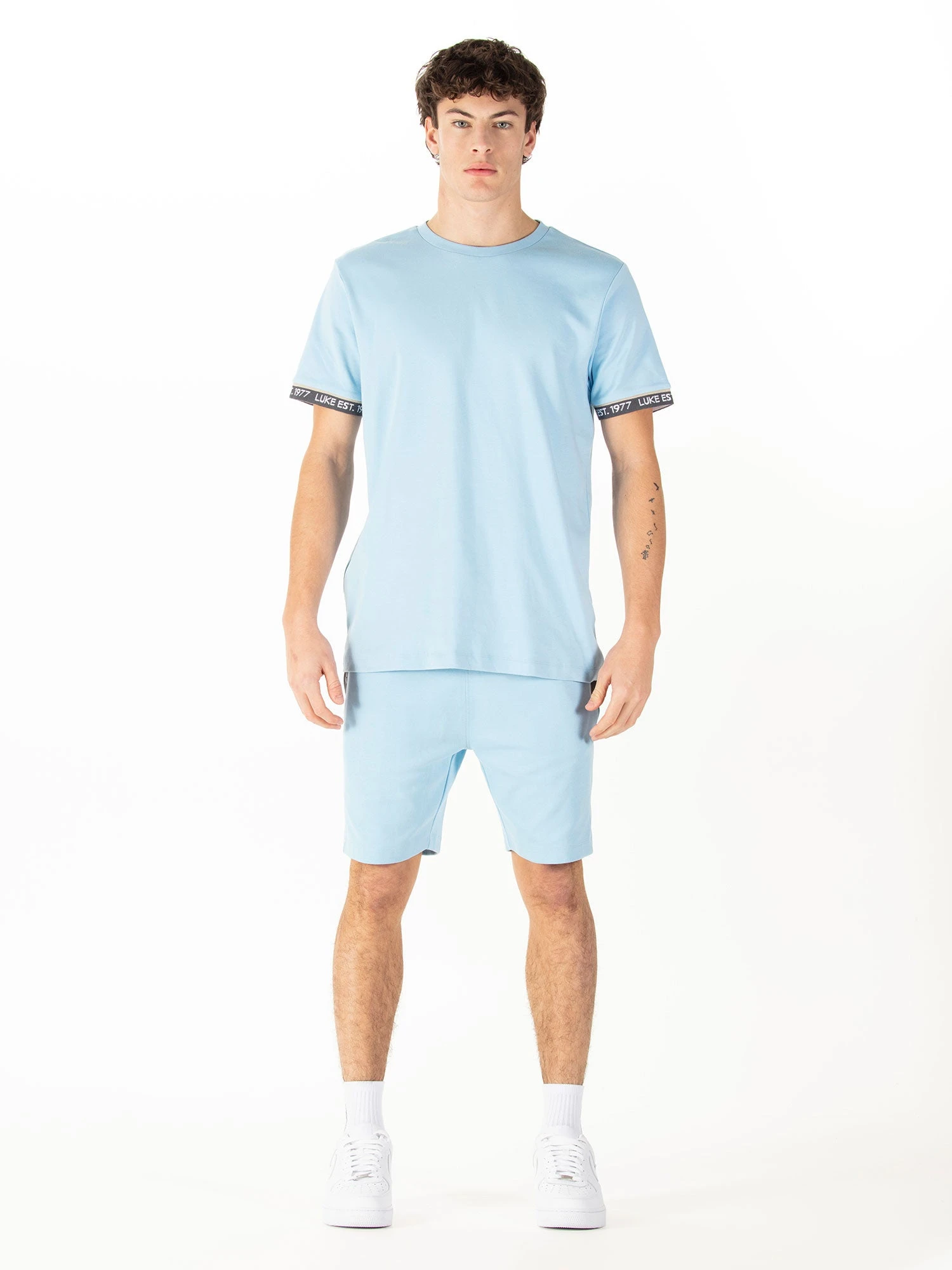 Update your summer wardrobe with this crew neck tee & shorts set from LUKE. Set to be a season essential, t-shirt is cut from pure cotton and features a comfy rib neck and contrast ribbed cuffs. The cuffs are then detailed with a repeat LUKE est. 1977 print.Â
