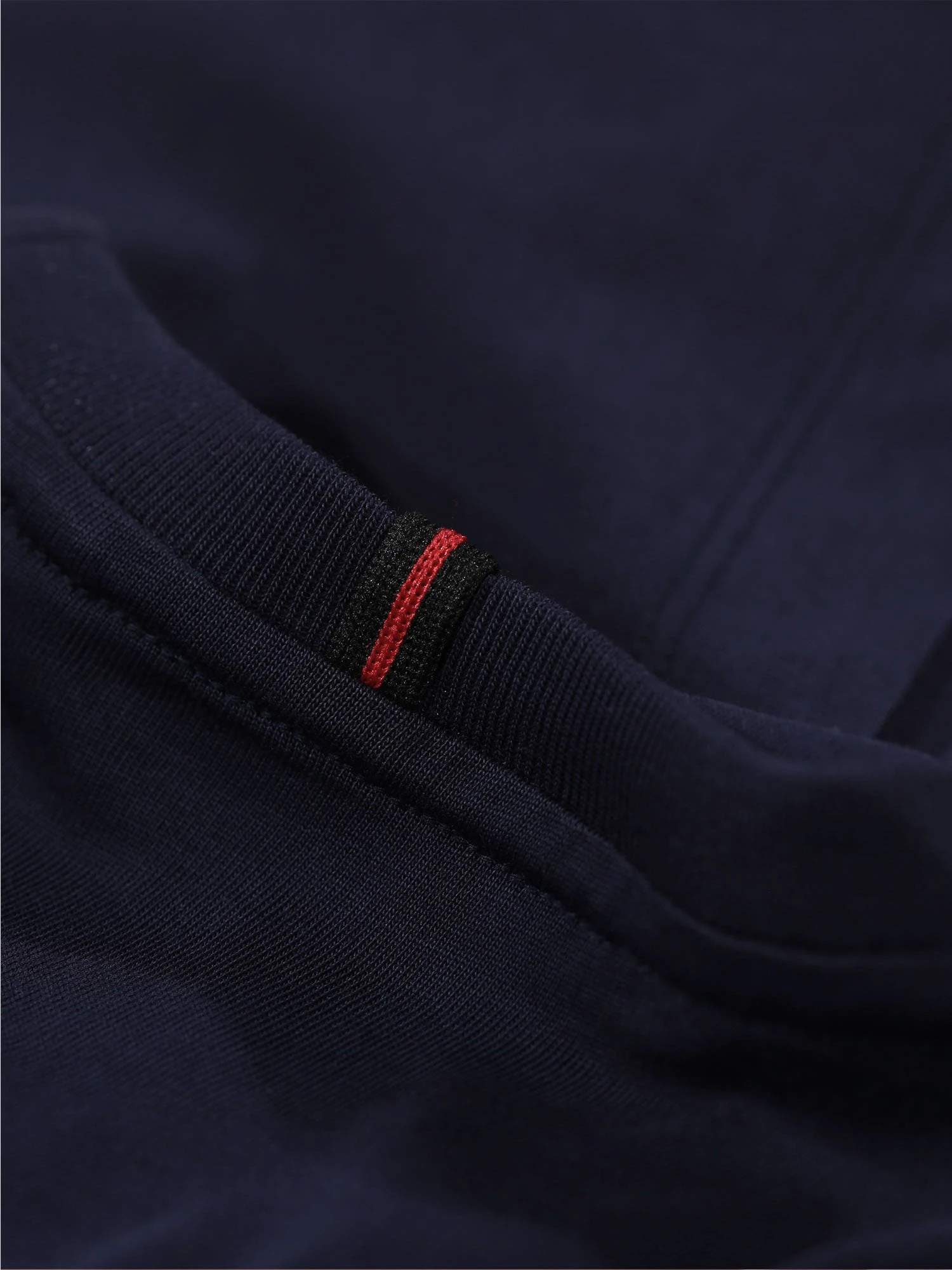 - Trim tape looped over the centre back neck