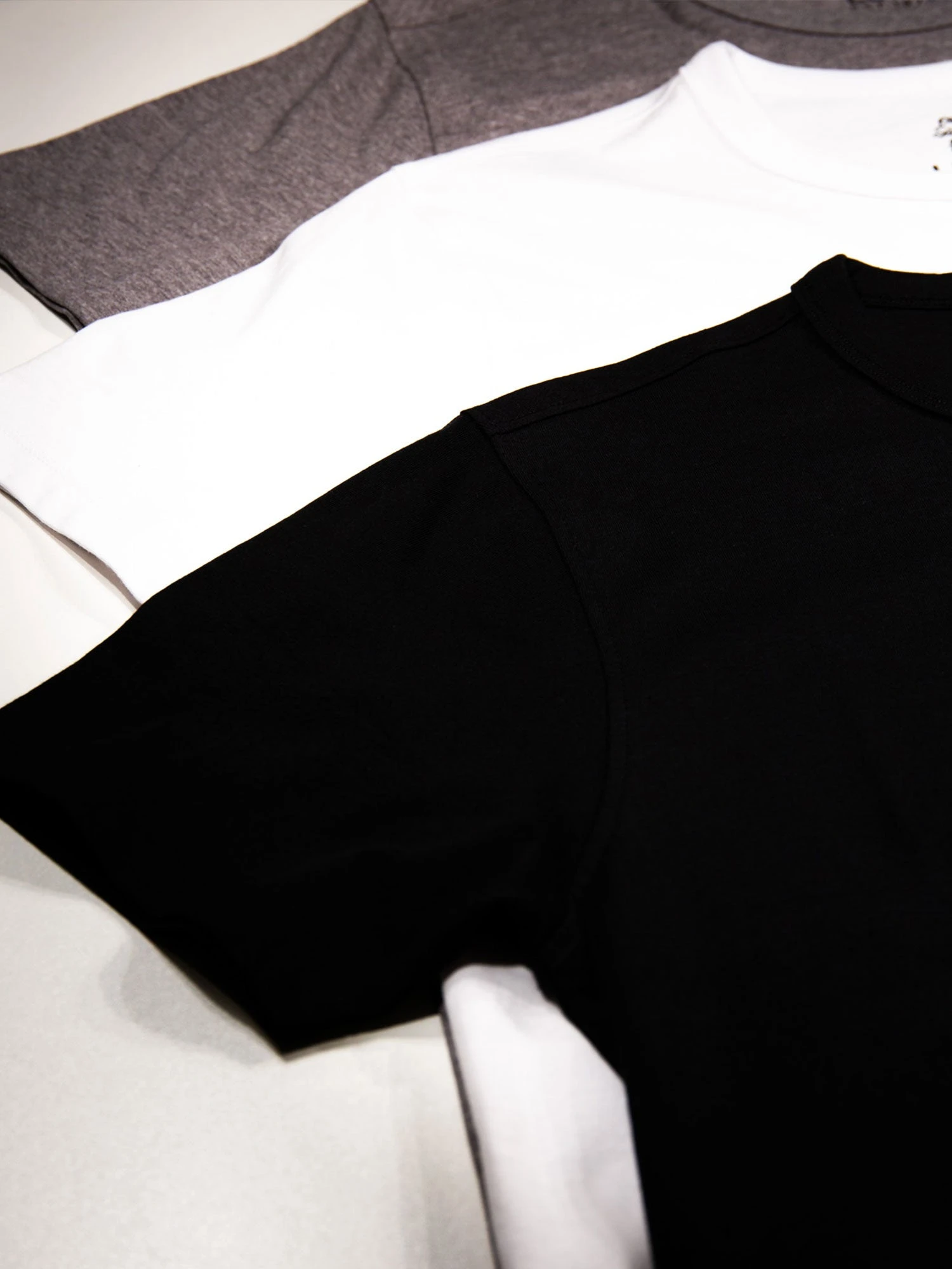 The LUKE essential t-shirt pack, the RECO 3 pack will fit into any wardrobe. The RECO t-shirt is cut from 100% cotton jersey in a regular fit with a soft rib neck for ultimate comfort. The t-shirts feature the LUKE EST 1977 metal rivet on the bottom left.