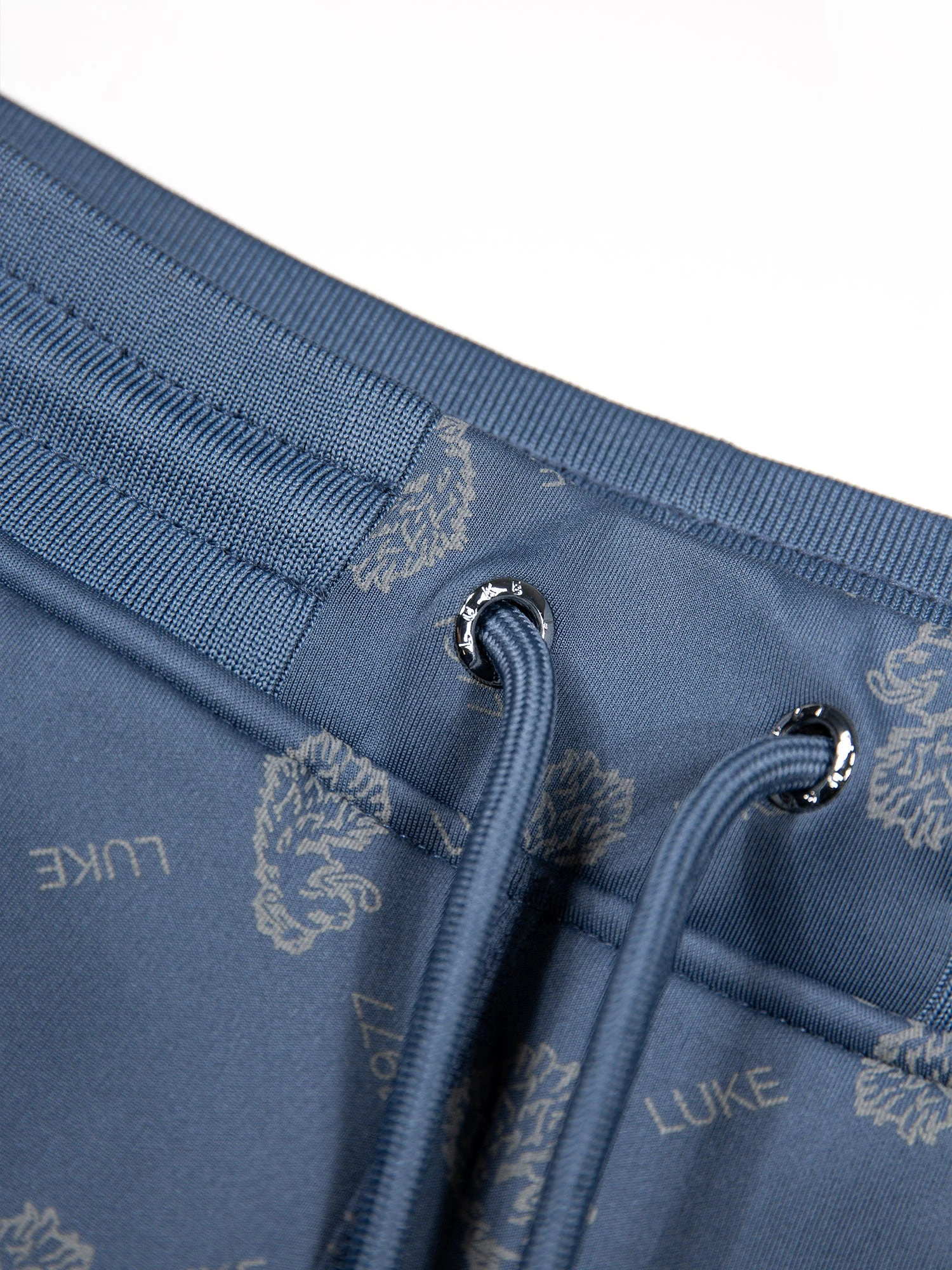Our luxury tricot joggers have been elevated this season with an all-over LUKE EST. 1977 lion repeat print and are detailed with chrome metal trims. They are fitted with soft rib cuffs and a drawcord waist – perfect for comfortable everyday wear. They are complete with feature zip pockets, handy for all your essentials.