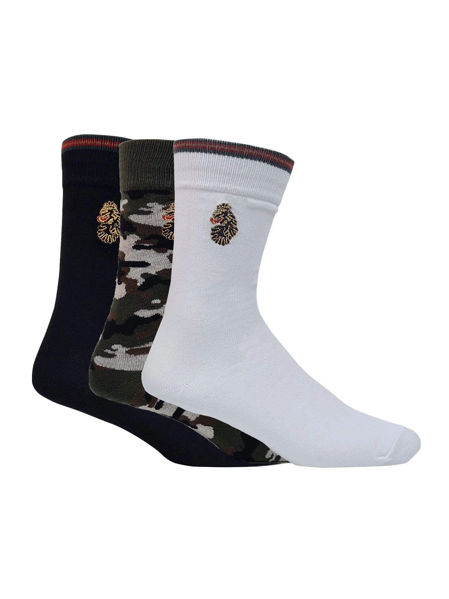 These 3-pack of socks featured in black, white & camo are a comfortable addition to your wardrobe. Cut from stretchy cotton mix, these socks are suited for everyday wear. These socks are a snug fit on the foot and are finished with the brands iconic tri-colour trim tape & black, gold, red embroidery