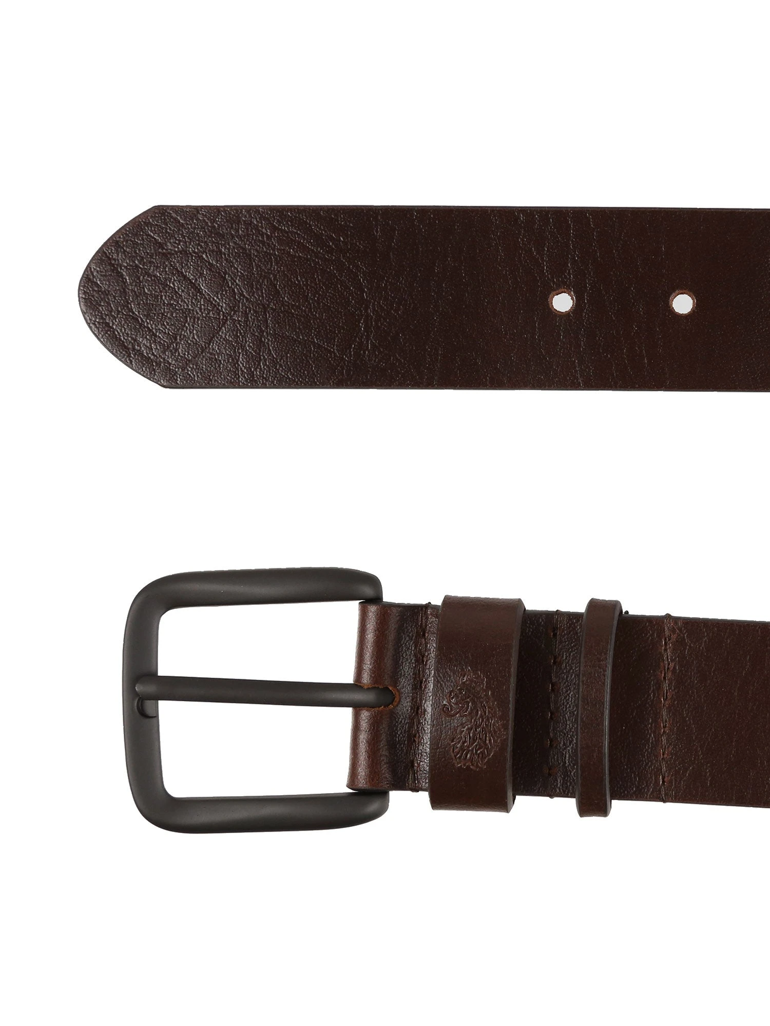 Cut from a premium leather, this LUKE belt is sure to complete any sleek outfit. This smooth belt is secured with a matte black metal buckle and features a debossed lion logo.