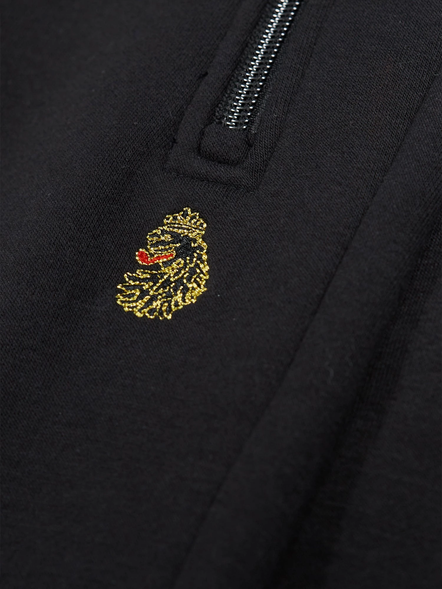 The SYDNEY funnel neck sweat from LUKE is cut from a cotton fleece back fabrication ensuring warmth and comfort. The classics remain with a ribbed neck, cuff and hem and is completed with a central chrome quarter zip and the brands iconic lion head embroidery on the left chest.