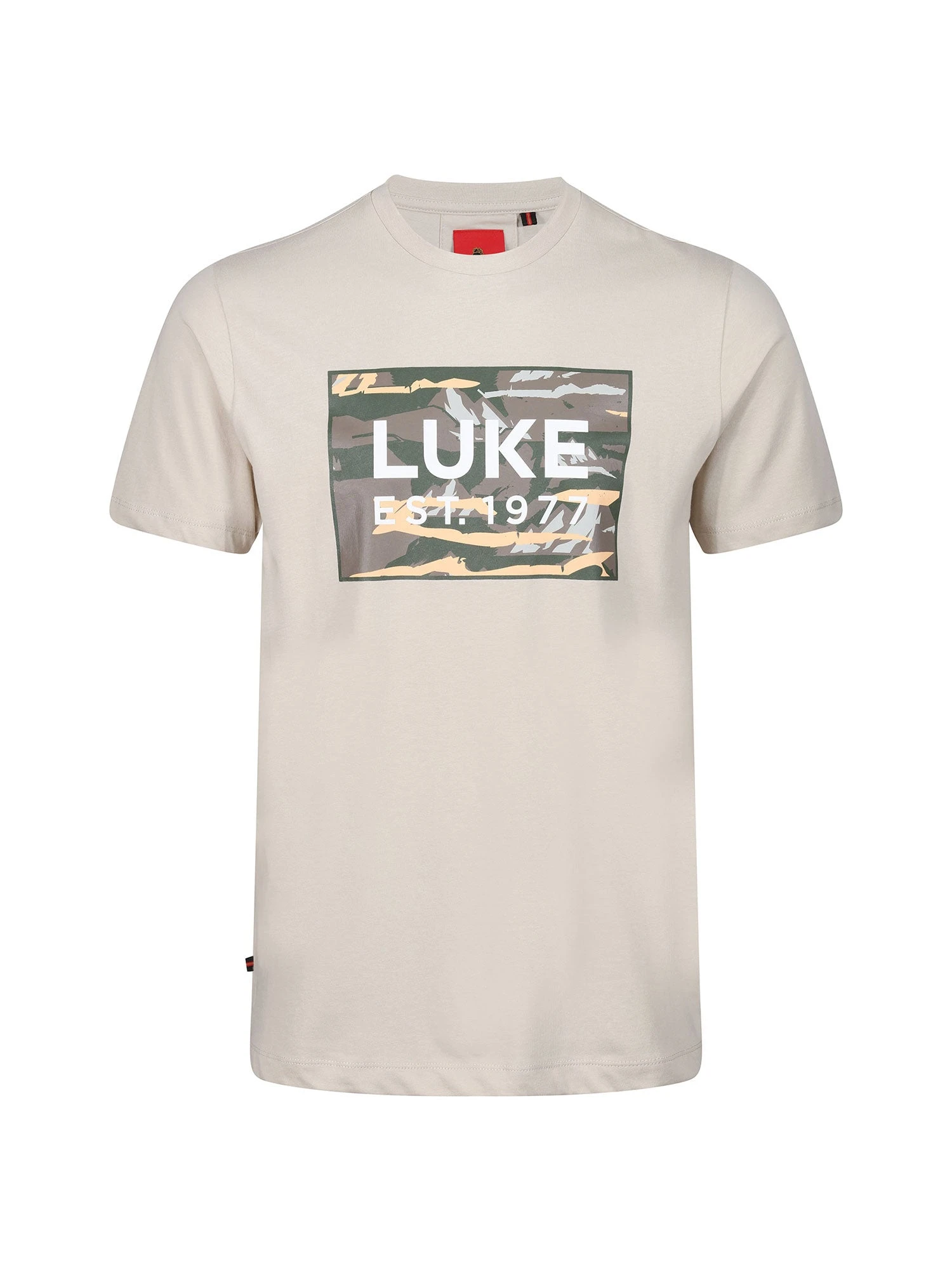 This stylish crew neck tee from LUKE is perfect for casual days. Crafted from a soft pure cotton, it is a fitted with a comfy rib neck and features a camo LUKE EST. 1977 raised print on the front.Â