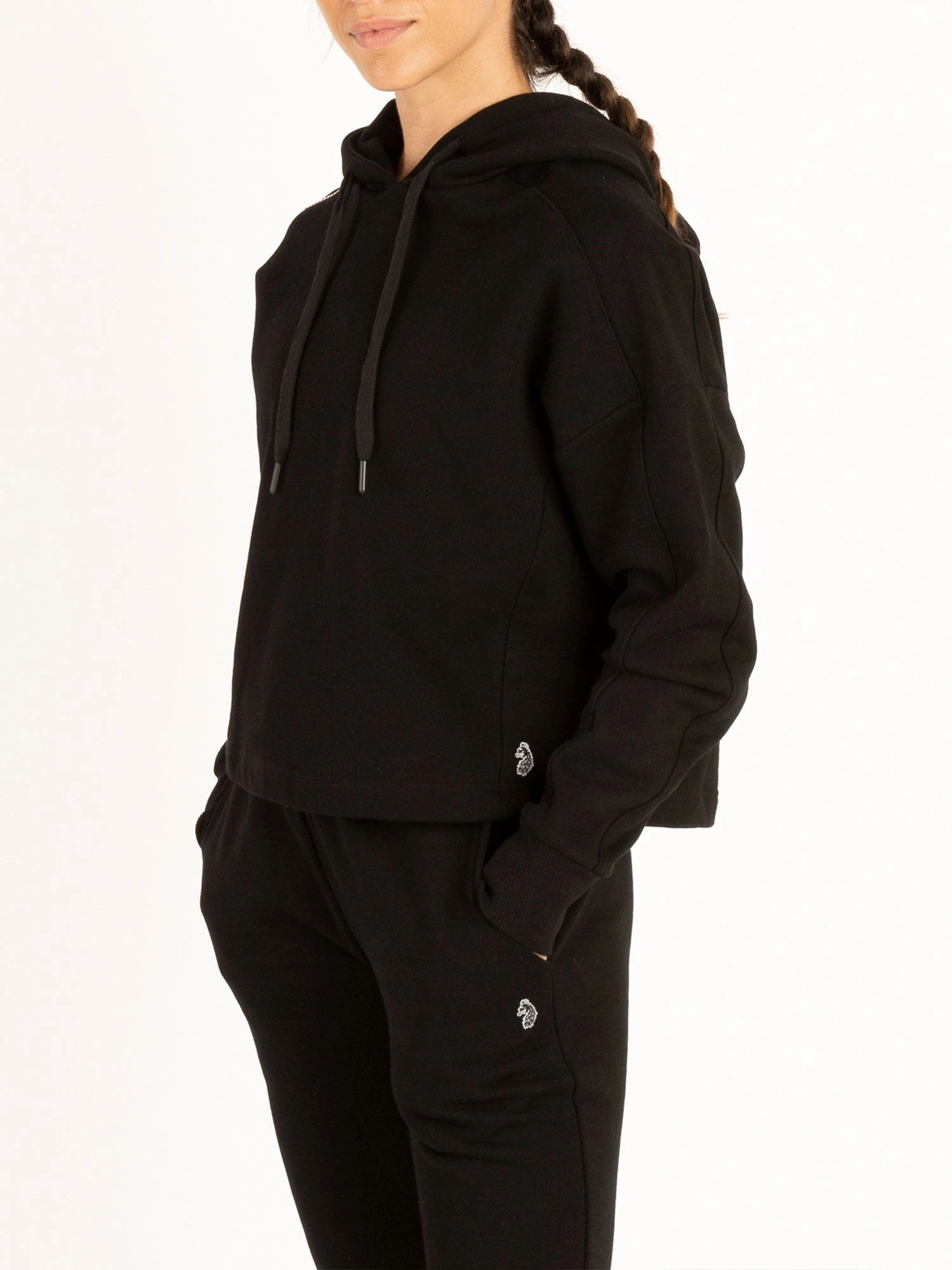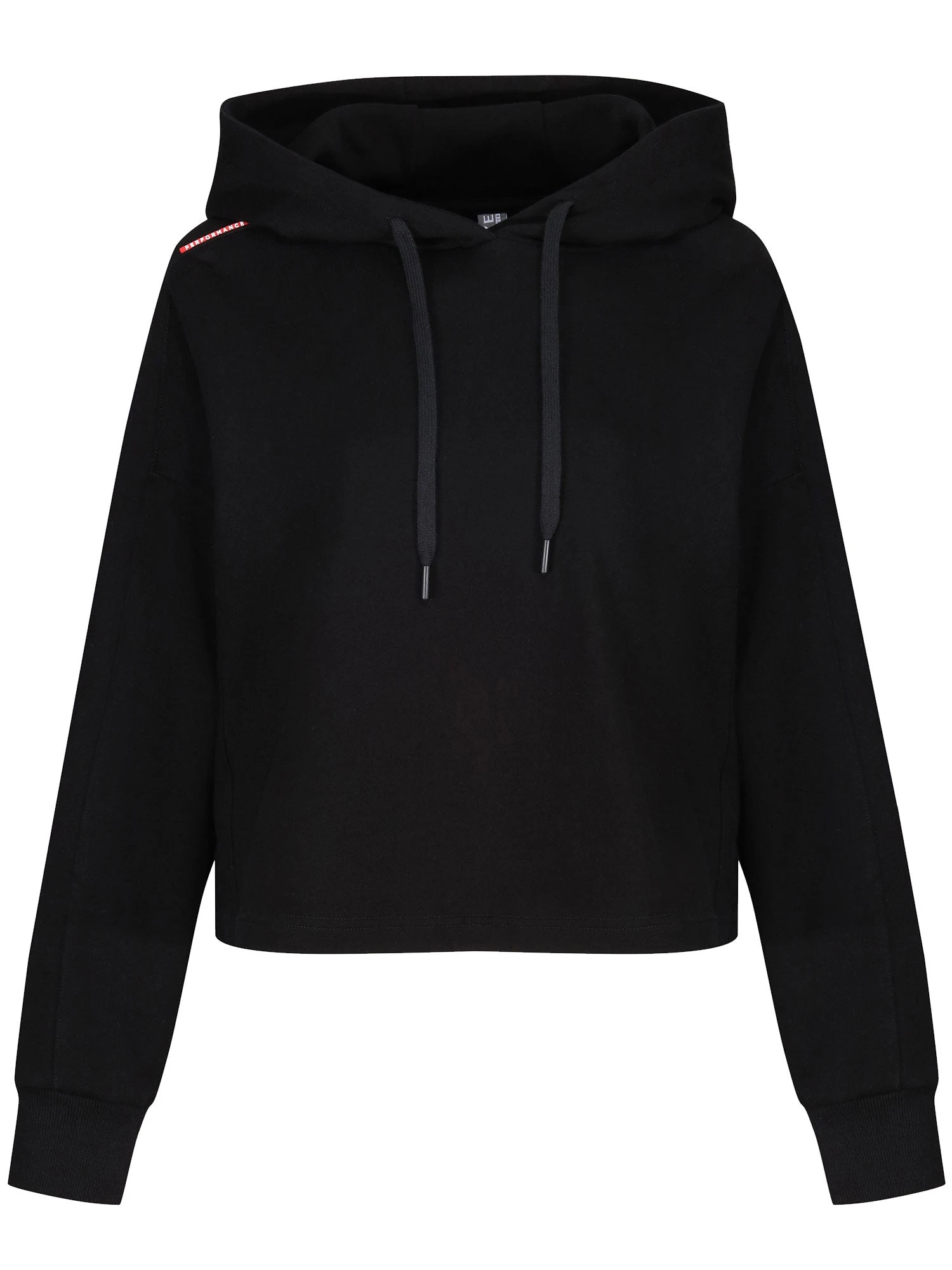 The perfect post-workout cropped hoody from the LUKE womenswear performance range is crafted from a soft recycled cotton and is cut to a boxy fit. It is detailed with front contour seams and is completed with the brands iconic rubberised lion head badge.