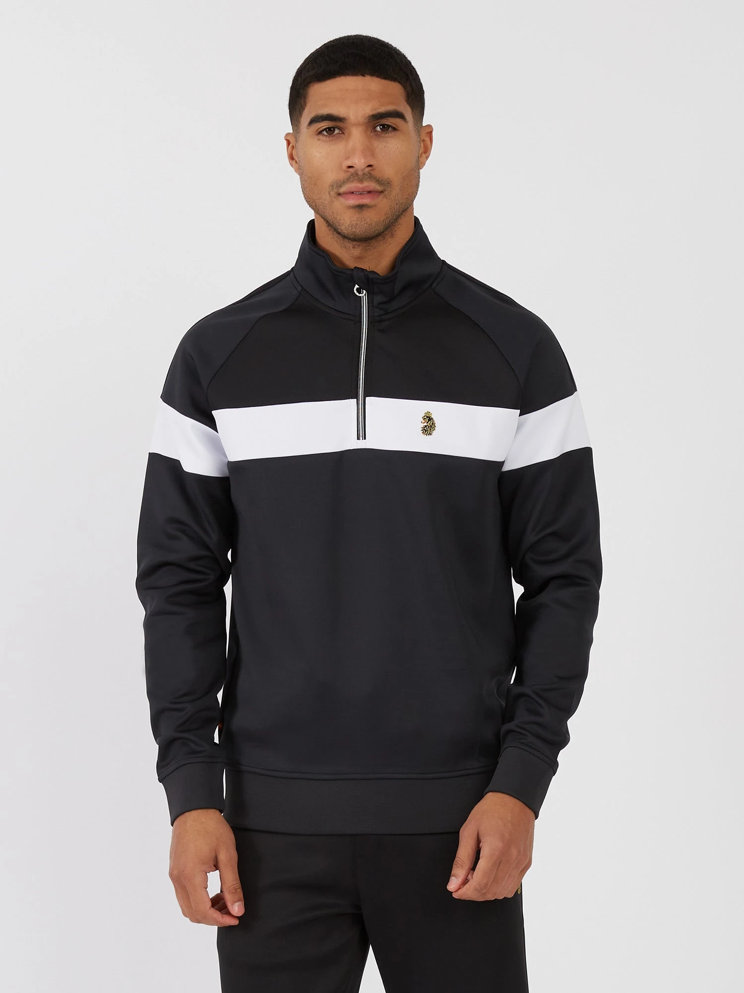 LUKE is your go-to brand for terrace-ready styles and this funnel neck sweat offers just that. It is constructed from a classic tricot, detailed with a stylish chrome quarter zip and features contrast cut and sew panels. It is then signed off with the brand’s iconic lion head embroidery on the left chest.